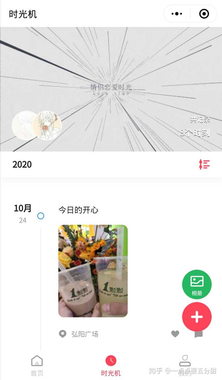 时光机是我最喜欢的一个功能,我们一开始使用QQ情侣空间记录爱情,每个月要分别花10块钱充黄钻太麻烦。后来用微博记录,要么发好友圈麻烦,要么就会被不认识的人看到。发现这个小程序的时光机很是好用,第一节省钱第二私密性好第三很方便。